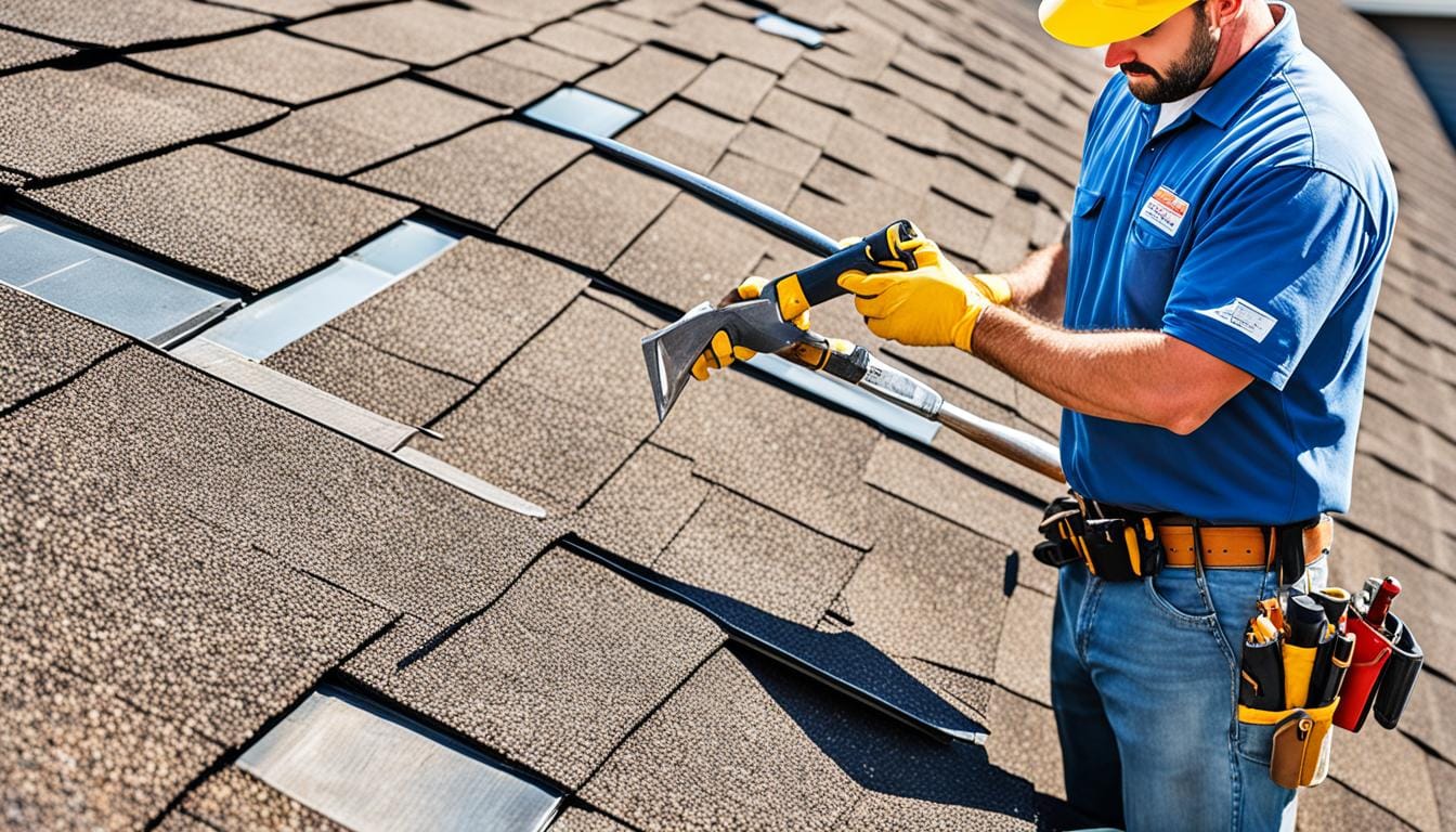 ,500 to ,000 or more. Your roofer will give you a detailed quote before starting.What should I look for when choosing a roof repair contractor?Look for a contractor with a good history, the right licenses and insurance, and experience with your roof type. Check reviews and ask for references for happy customers. Choose one who offers work and material warranties.How can I extend the life of my roof?Keep your roof in good shape with regular maintenance and inspections. Clean gutters and downspouts, trim trees near your roof, and fix any damage quickly. Annual pro inspections can spot and fix problems early, saving you money later.What are the most common roofing materials for residential homes?Common roofing materials are asphalt shingles, metal, tile, and slate. Asphalt is affordable and versatile. Metal is durable and saves energy. Tile and slate look unique and last long but cost more.How do I know if my roof has storm damage?Look for missing, cracked, or dented shingles, granule loss, and dents in metal roofs. Leaks, water stains, and higher energy bills could mean storm damage. If you think there’s damage, get a pro to inspect it.,500. Big repairs could be How do I know if I need roof repairs or a replacement?A pro can check your roof to see if you need fixes or a new one. Look out for leaks, missing shingles, and a roof that’s not even. If it’s over 20 years old or badly damaged, you might need a new roof.How long does a typical roof repair take?Roof repair time varies by how much damage and the repair’s complexity. Small fixes, like a few shingles, might take a day. But bigger repairs could take several days. Your roofer will tell you how long it will take before starting.Can I repair my roof myself, or do I need to hire a professional?You might do some small repairs yourself if you’re handy. But most roofing work is best left to pros. It’s a risky job needing special skills and tools for safety and quality. Pros also follow local codes and keep warranties valid.How much does a roof repair typically cost?Roof repair costs change based on damage, materials, and repair complexity. Small fixes might cost 0 to